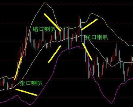 股价运行在下轨喇叭口有放大迹象属于弱势,一般不建议持股,股价在下轨运行喇叭口有缩小迹象有可能股价要进行一次反弹过程了。