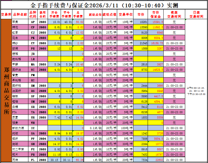 手续费与保证金会随商品价格的波动,交易所的手续费调整而变动