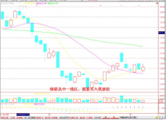 内参口诀十一:绿荫丛中一线红,抓紧买入莫放松。 这一诀说,当一只股票或者权证,连续向下多日回调,如3根、5、7、9根阴线,呈现出一片绿时,有一天你发现K线当日可能收阳星,或者是小阳线时,不必分析原因,是主力震仓、吸货、还是什么放量出货,尽管杀入...