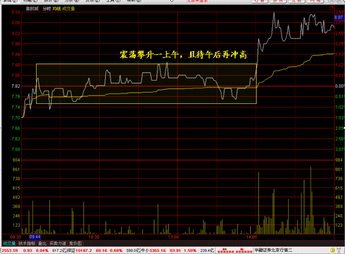 口诀二十:震荡攀升一上午,且待午后再冲高。